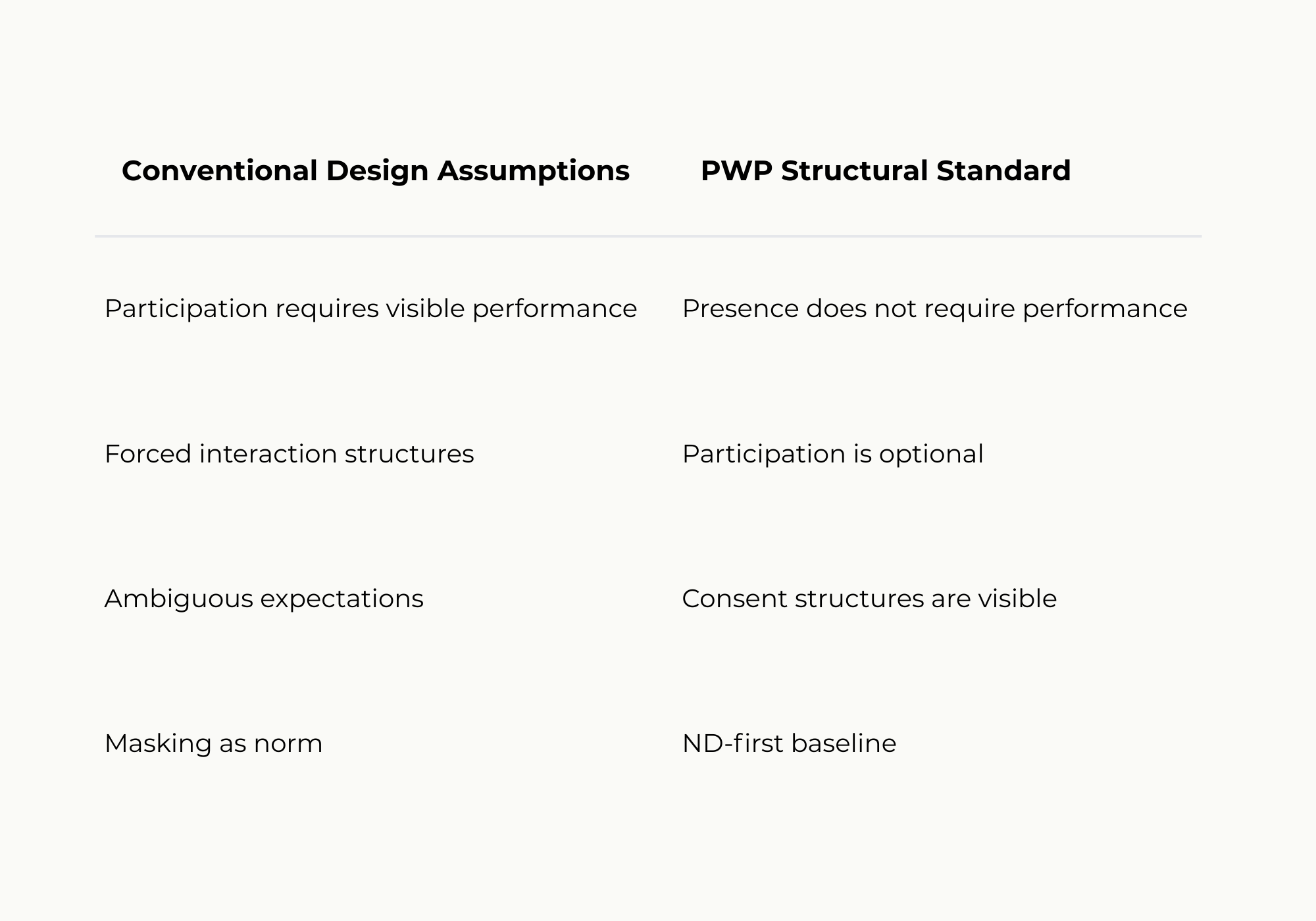 A governance framework for designing environments where presence does not require performance.